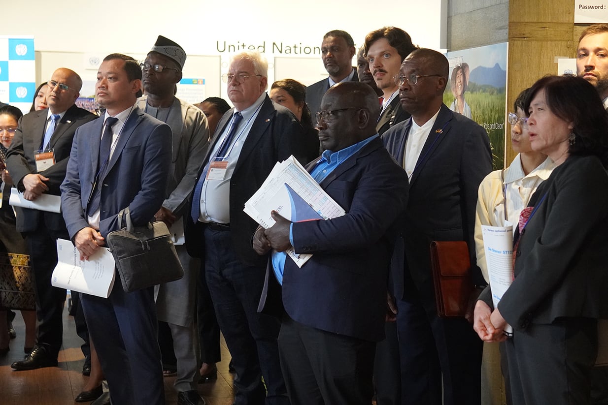 悪天候にもかかわらず、国連関係者や多くの大使館の方々にお越しいただき、95名の参加があり、43カ国からのご参加がございました。